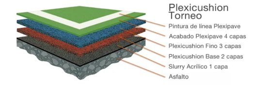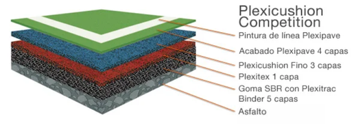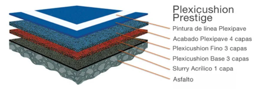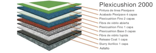 Plexipave® surface layers deliver a uniform and consistent bounce while protecting the underlying layers from ultraviolet light.